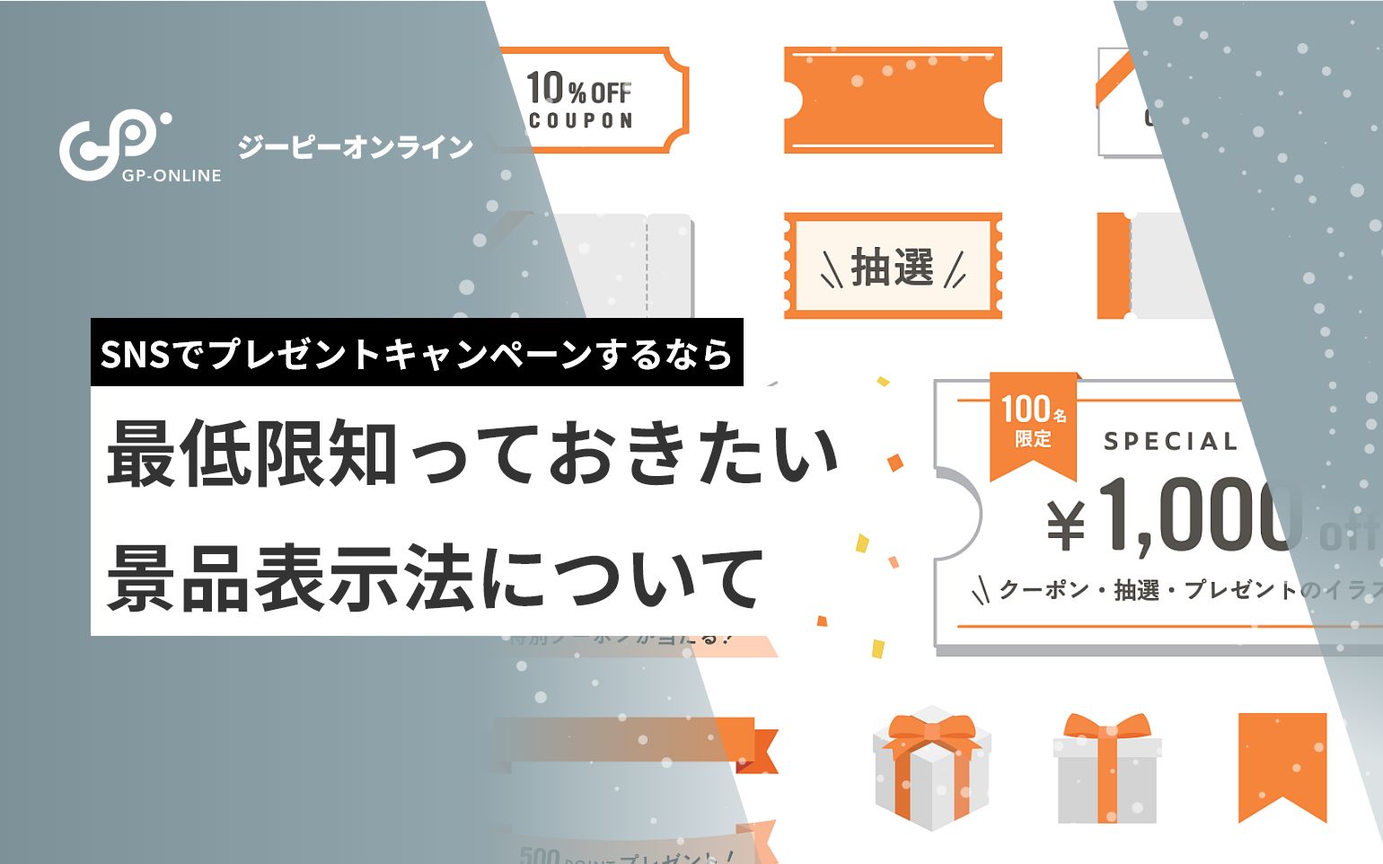 SNSを通じて、プレゼントキャンペーンを企画しようと考えられているのであれば注意しなければいけない法律があります。「景品表示法」(景表法)です。景表法について理解していなければ、賞品や賞金が当たるキャンペーンをおこなっても景表法に違反し罰則を受ける可能性があります。